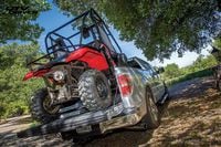 Looking at the Pioneer 500 you might first notice the narrow width; Honda’s goal was to make a machine that could fit between the wheel wells of a pickup truck but also would take up very little space in the garage or small storage building. This narrow width also opens access to many trails where things get really tight or where trail width is choked down to the 50-inch mark. The Pioneer 500’s 9.6 inches of ground clearance allows the machine the ability to travel over rocky terrain or rutted out trails. Looking at the suspension we only found 5.9 inches of wheel travel both front and rear, and this might look limited on paper, but this machine uses every inch very well. As for hauling payload, the rear rack will carry 450 pounds, and the preload-adjustable gas-charged shocks help handle the heavier weight. Curiosity made us wonder why the traditional bed was replaced with a rack, but looking at general use and purpose for the P500, this rack might work better. The towing ability of this machine is a stated 1,000 pounds from the rear receiver, and with one super-low first gear to get you rolling, it pulls like an ox. Getting the machine slowed or even stopped was not an issue with Honda’s 200mm front disc brakes and 170mm discs on the rear. Being fully loaded with cargo could be a different story altogether though.